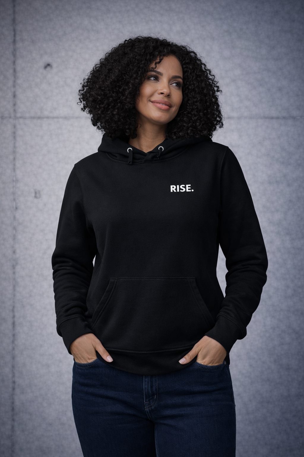 RISE. Damen Hoodie Schwarz – Minimal Streetwear | Premium Stick
